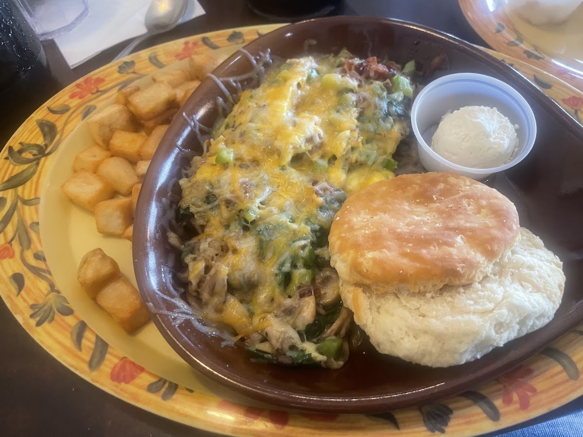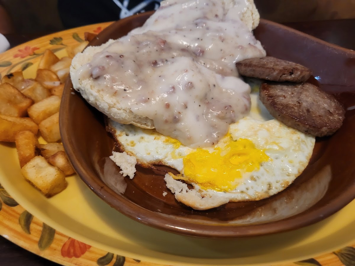 You have to try the Surf and Turf Eggs Benedict! The crab cake is delicious, and the steak was cooked beautifully. Just a tip—skip the asparagus; it throws off the balance of the dish. And the biscuits and gravy? Amazing! The biscuit was huge, fluffy, and paired perfectly with the smoky sausage gravy. Plus, our server Alexandria was a gem! She was so sweet and attentive, even with the breakfast rush in full swing. Highly recommend!