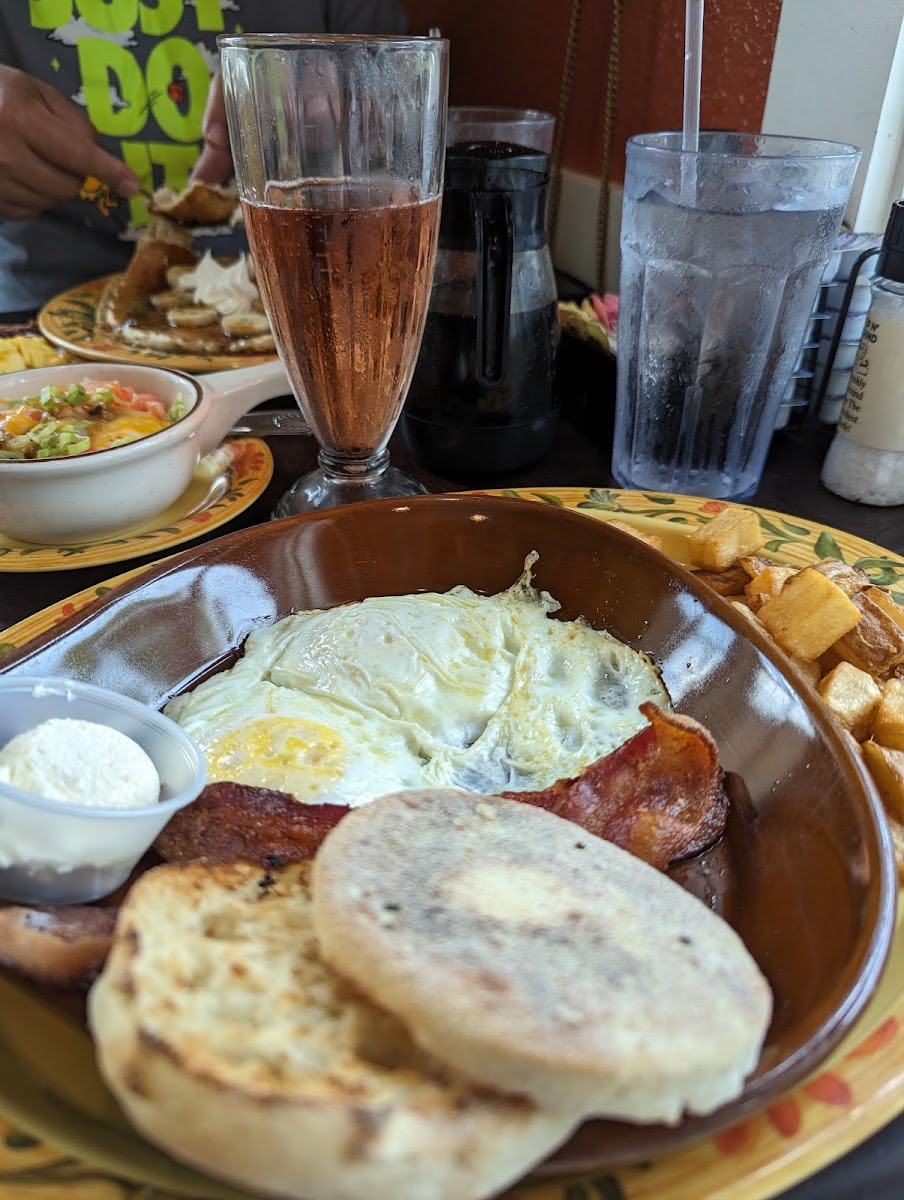 Why did I wait so long to go back to the Egg? Perfect potatoes, eggs basted just right, English muffin nicely dark, avocado soft!! Very sweet server with helpful tips and coffee at just the right times. Servers seem to mesh fairly well. Always do find it comfy and cozy with a broad variety of customers.